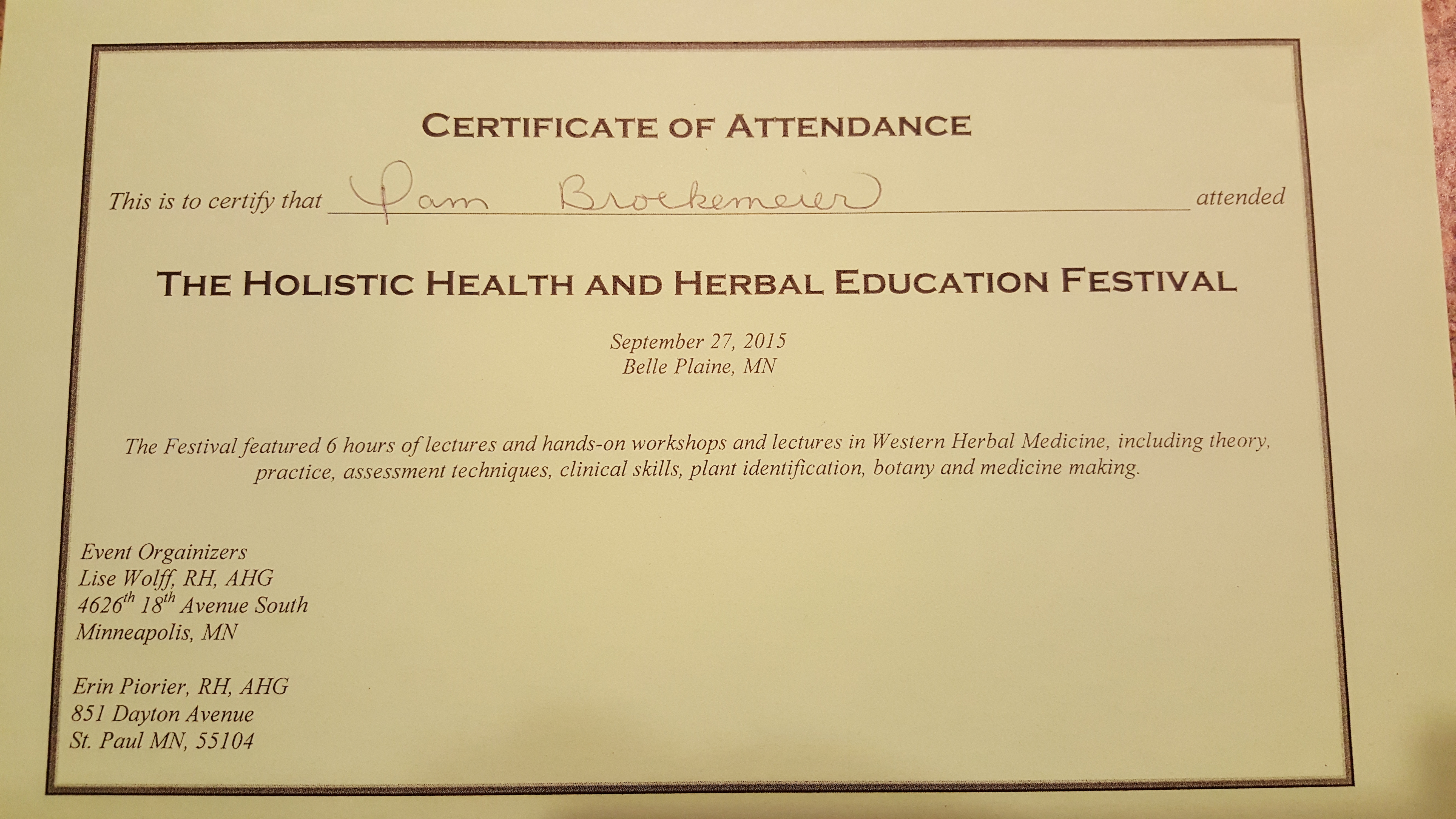 xEducation and Experience Schooling Currently attending the East West School of Planetary Herbology to become a clinical herbalist HerbMentor.com St. Cloud State University, B.A. in Anthropology – 1991 Workshops/Seminars/Conferences Attended the Holistic Health and Herbal Education Festival on Sept. 27, 2015 Attended the Holistic Health and Herbal Education Festival on Sept. 6, 2014